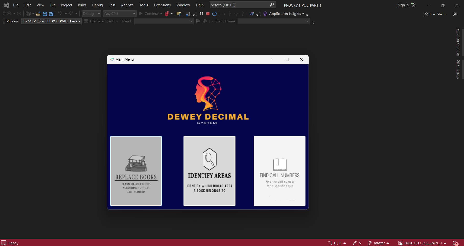 A windows form application designed to teach users about the dewey decimal system. This application was also made as a project for one of my degrees assignments and made entirely by me. The background was a librarian wanted an application that would teach her new employees about the dewey decimal system. The dewey decimal system is a hierarchical classification system for libraries, organizing books and other library materials based on subject and discipline. This application added gamification features to learning the dewey decimal system in order to make learning about it fun and educational at the same time. There are 3 games that the user can choose to play, with each game being vital to learn and fun to play. This is one of my best and biggest applications that I have made so far, and it was challenging to make. I also got a very good mark for this project, and I hope you have a little bit of time to try it out, its worth a shot.