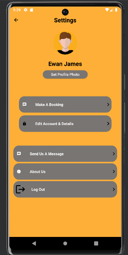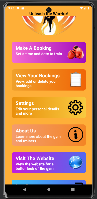 A mobile application that serves the purpose of being a "booking" app for the client we made it for. It allows users to book a training session and view their booked sessions, along with a few customization items and a link to the NGO's (Non-Government Organization's) website (which we developed as well). The client overall was very happy with the app, and so was the team. This was our first touch of industry experience, as we had to seek out the client ourselves, gather the requirements and develop/design everything ourselves. Overall, the app was very fun to develop as it was our first major mobile application, and it gave us good experience for developing and designing future mobile applications. This mobile application is currently under testing in order to be deployed on Google Play Store.